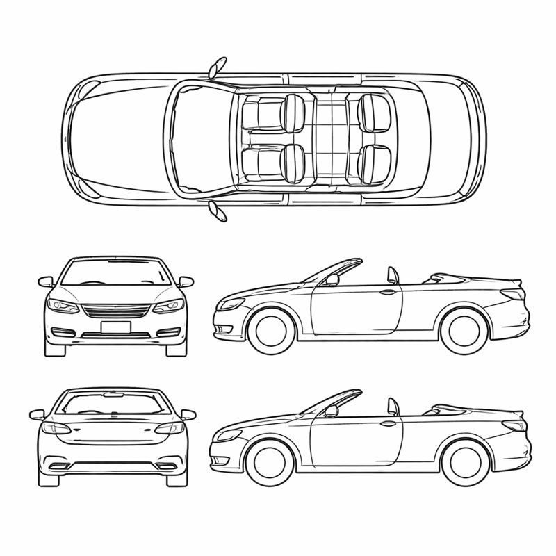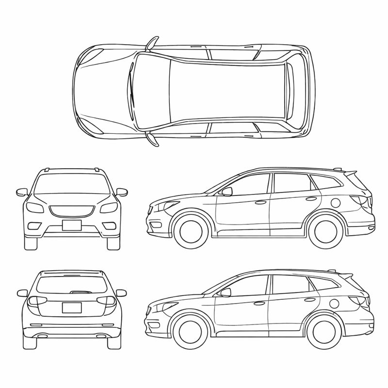- Sedan, SUV, van, pickup, hatchback, coupe, convertible, passenger van, box truck, golf cart, motorcycle, bicycle, and tractor/other layouts.
